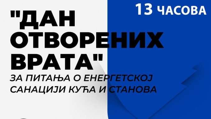 Општина Инђија у среду, 12. новембра, са почетком у 13 часова, у Културном центру Инђија, организује „Дан отворених врата“ за све грађане који желе да се ближе упознају са програмом енергетске санације.